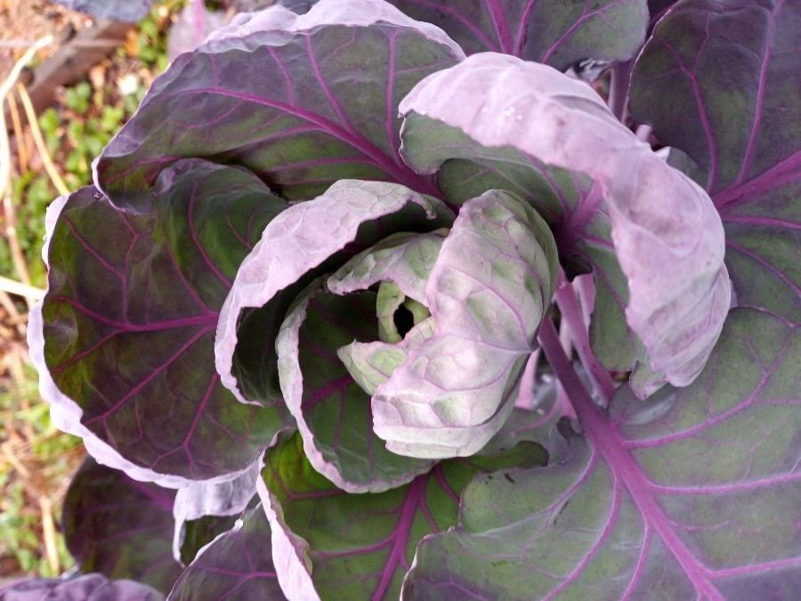 Arrange bunches of bold colour – I do a planting plan ahead of time every year.  Try grouping your vegetables, flowers, fruits and herbs together so that you have lots of colour and texture (different leaf shapes).  For example, you may edge the bed with the leafy fronds of carrot followed by beets and parsnip, maybe you plant some asparagus in the centre for the height or an obelisk in the centre and plant runner beans to climb it.  You could use yellow, green or purple bush beans to fill in the blanks.  I grew some purple Brussel sprouts last year and the leaves were spectacular!