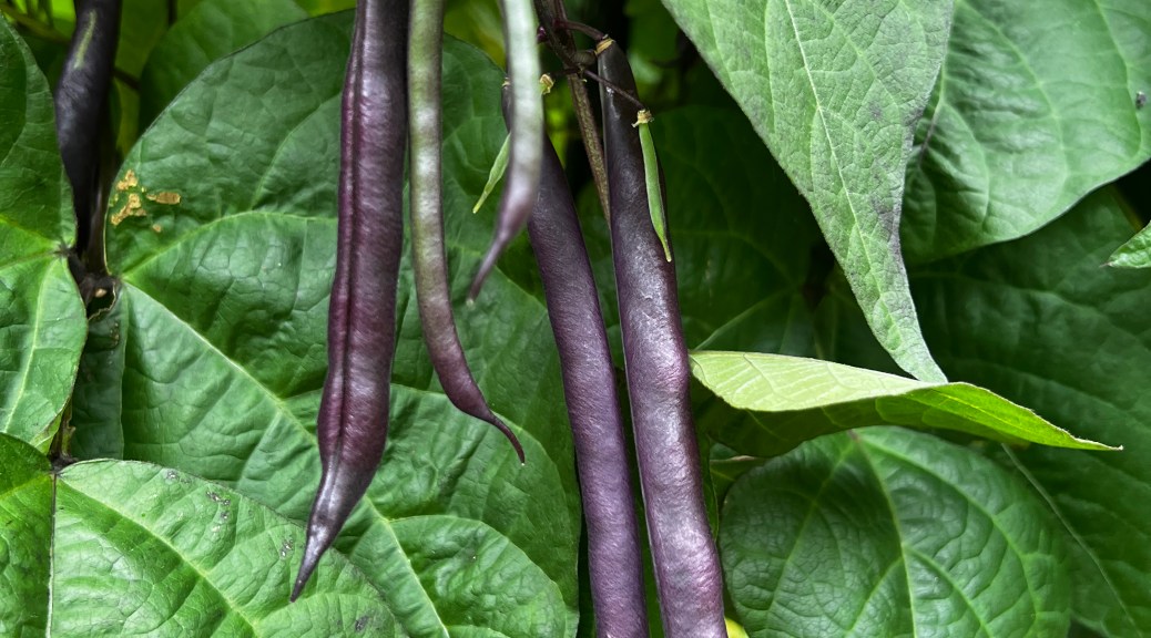 - A purple pole bean, Trionfo Violetto, that unlike the purple pole bean, Blauhilde, that I usually grow was more tender and stringless, although not quite as productive
