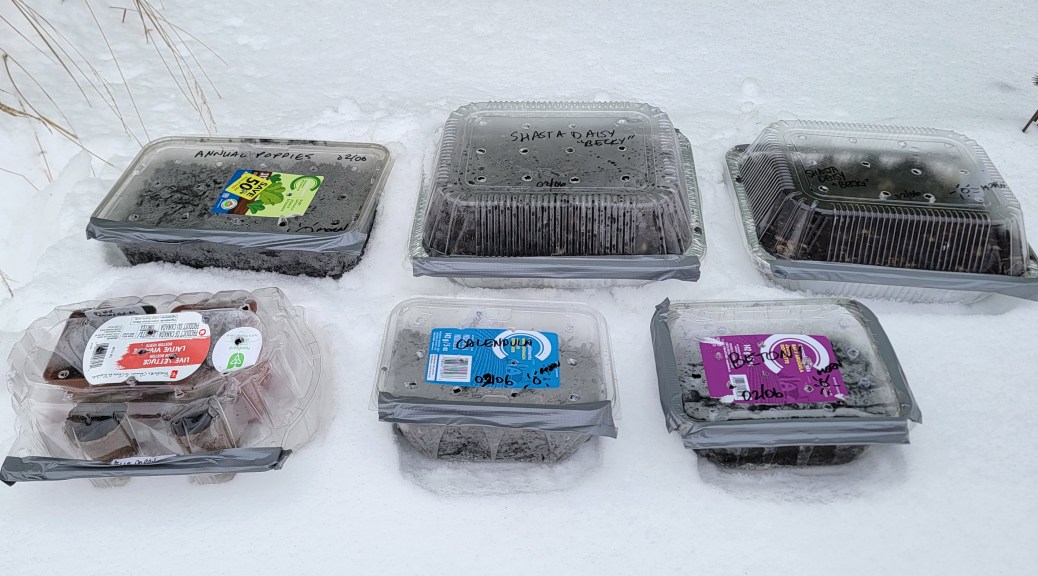 Some videos (and posts) you may want to check out – there are lots of winter sowing videos out there (sometimes with conflicting information) but these are two that are recommended by the online group