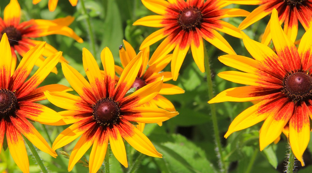 Here are a few drought-hardy native species that were still blooming and supporting pollinators in my garden on October 10th. All are resistant to deer. Sun, soil and moisture requirements, height, bloom colour and bloom time are noted for each.