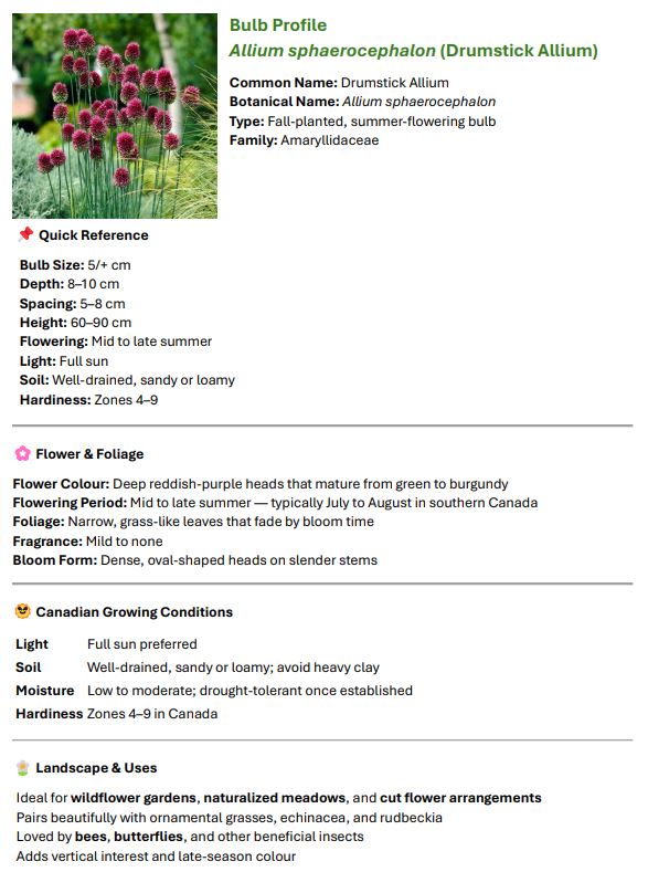| Allium Sphaerocephalon (Drumstick Allium) | 10 | $11 |