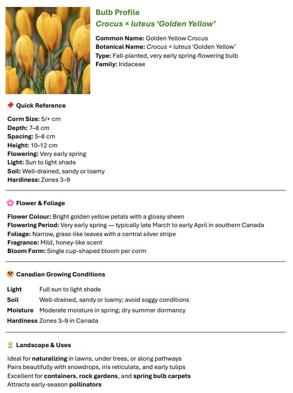 | Crocus “Golden Yellow” | 10 | $20 |
