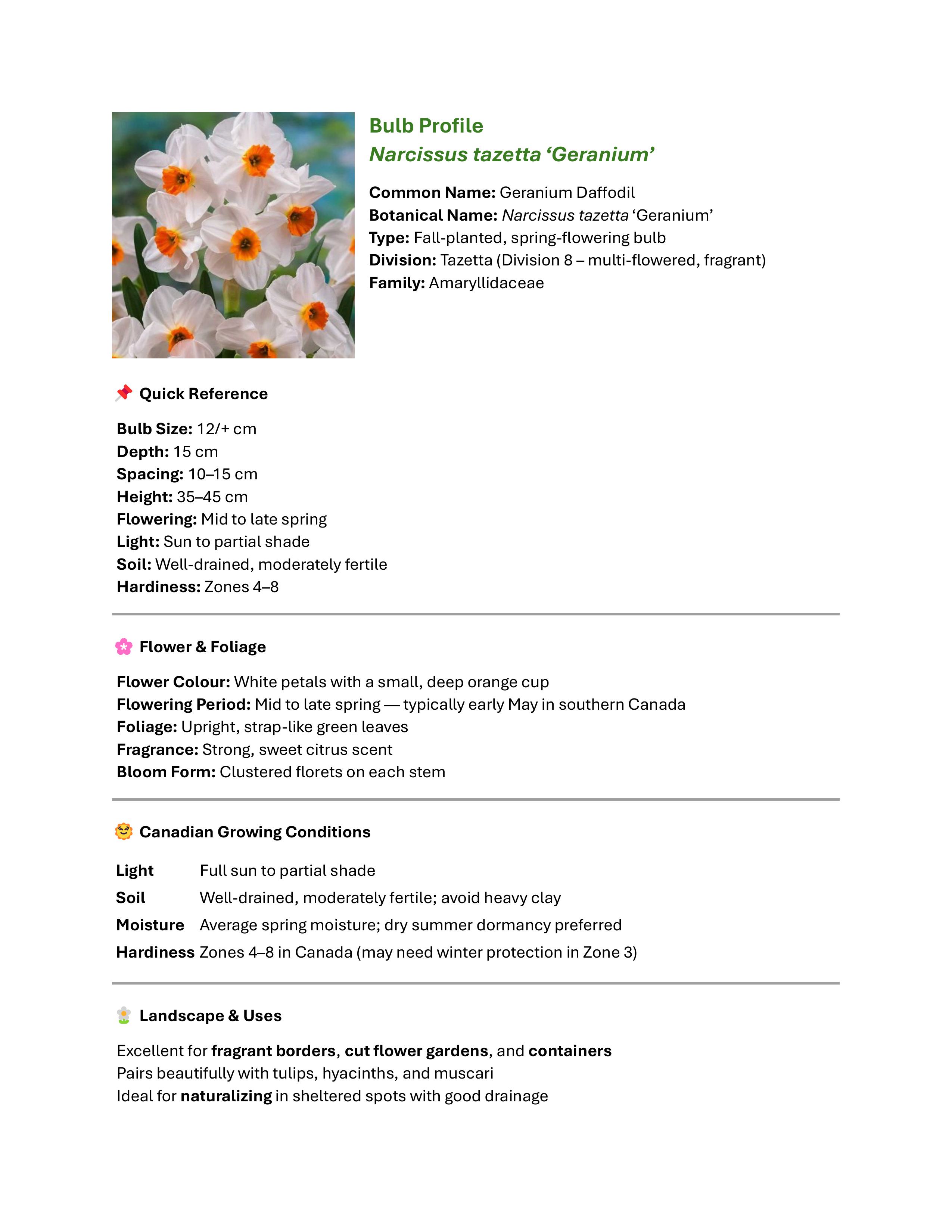 | Narcissus Tarzetta “Geranium” | 5 | $25 |